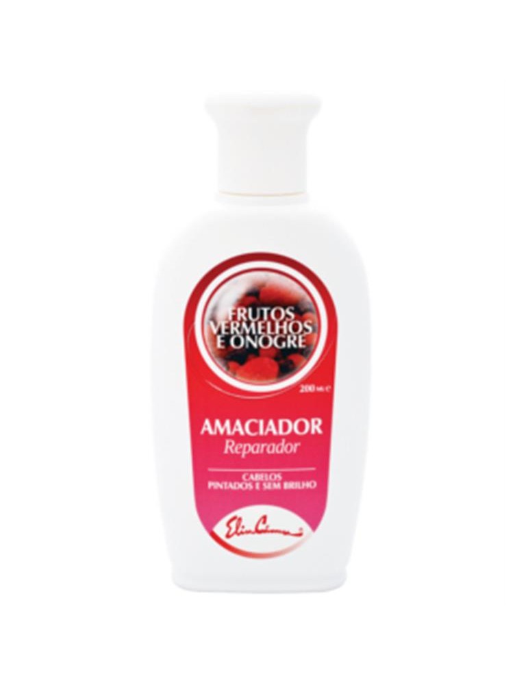 O extracto natural de Frutos Vermelhos rico em antocianinas de acção antioxidante e Óleo de Onogre (Evening Primrose Oil) com ómega 3 com função reparadora e amaciante. Protege os cabelos dos danos provovados pelas tintas capilares e pela radiação solar. A utilização regular deste amaciador nutre o cabelo e devolve-lhe um brilho intenso, deixando-o fácil de pentear. Ingredientes: Aqua, Ciclopentasiloxano, Dimeticonol, Cetrimonium Cloride, Oenothera Biennis (Evening Primrose), Polyquartenium-37, Rubu