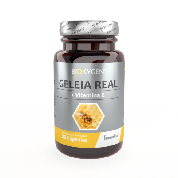 Biokygen Geleia Real 30 cápsulas é um suplemento alimentar formulado para reforçar as defesas naturais do organismo. Este suplemento combina Geleia Real e Vitamina E, numa fórmula prática para uso diário.