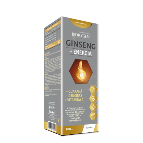 Biokygen Ginseng 200ml é um suplemento alimentar à base de Ginseng, Guaraná e Gengibre, formulado para reforço do sistema imunitário. Apresentação em frasco de 200ml.