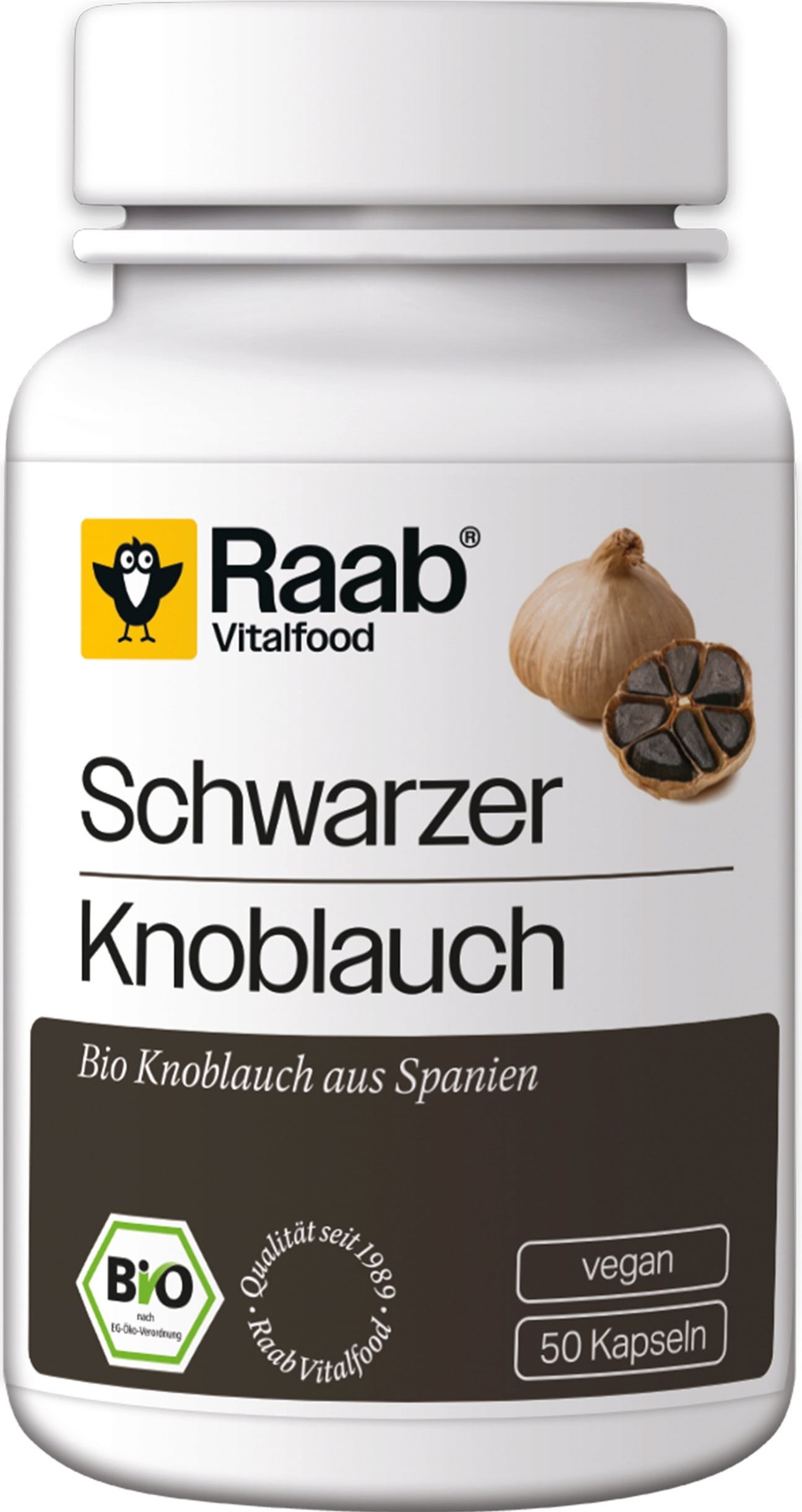 - As cápsulas de Alho Negro da Raab, são obtidas a partir de alho branco biológico recém-colhido, e cuidadosamente armazenado, sob condições muito específicas, durante algum tempo, antes de ser processado.