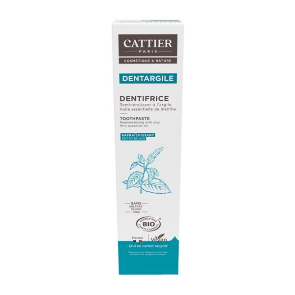 SEM FLÚOR Esta pasta dentífrica com argila e óleo essencial de menta biológica (purificante), refresca de forma duradoura o hálito a ajuda a mante os dentes e as gengivas saudáveis. Cosmético Biológico certificado por Ecocert Greenlife de acordo com os COSMOS Standards. Pasta de dentes de argila com menta