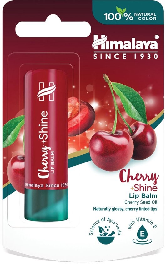 - Cherry Shine Lip Balm da Himalaya Herbals contribui para a manutenção os lábios secos, desidratados, feridos e gretados.