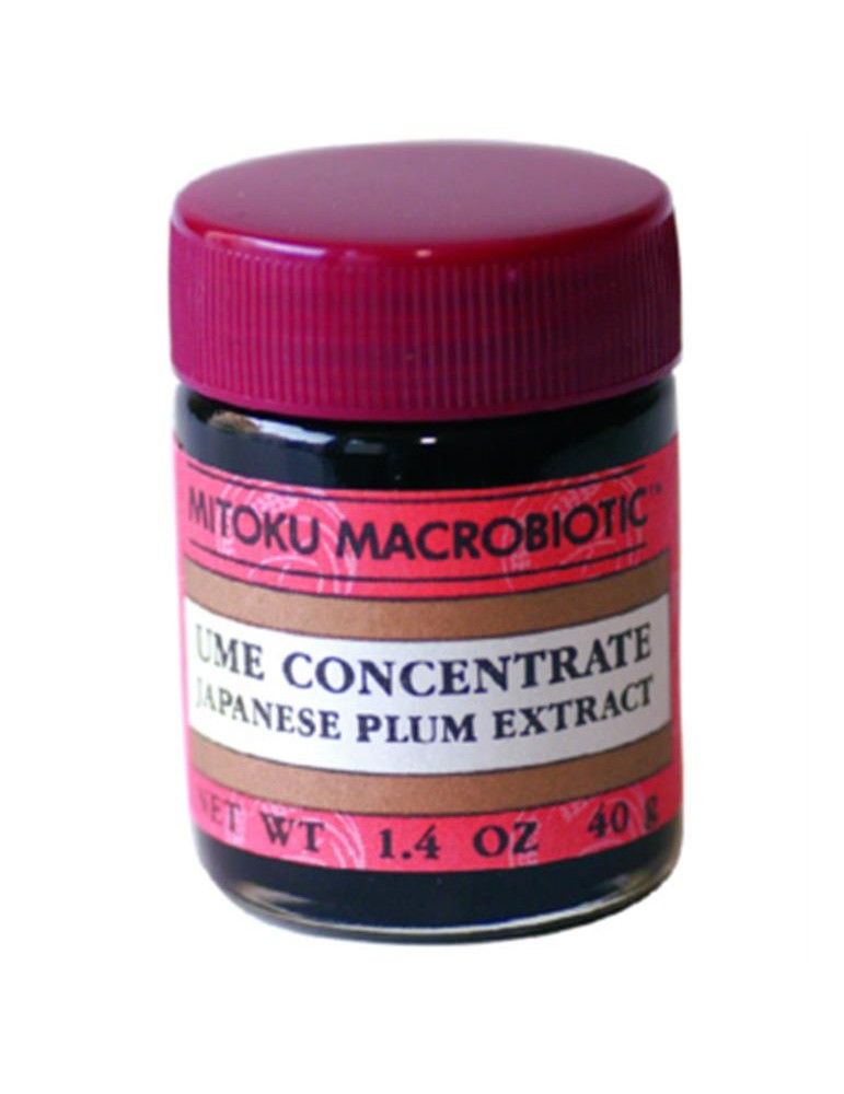 Concentrado de Ameixa Umeboshi Mitoku 40 g combina tradição japonesa com ingredientes de alta qualidade: ameixa ume (Prunus mume) fermentada, folhas de shiso e sal marinho.
