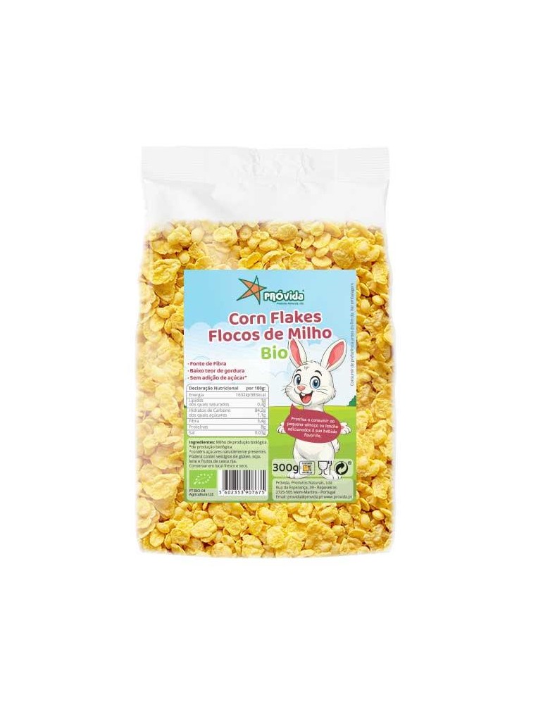 Milho de produção biológica. PT-BIO-04 Origem: UE. Poderá conter vestígios de glúten, leite, soja e frutos de casca rija. Fonte de fibra, baixo teor de gordura, sem adição de açúcar contém açúcares naturalmente presentes. Produzido exclusivamente a partir de milho biológico. Forma fácil e natural de consumir cereais.