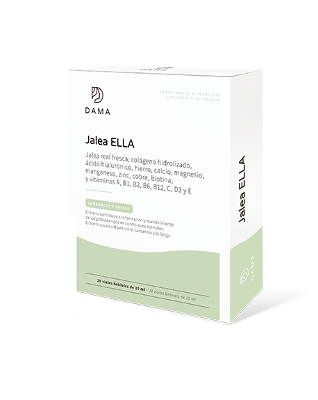 r 1 ampola por dia, de preferência em jejum, diluído em 150 ml de água ou sumo. Agitar antes de tomar. Ingredientes: Geleia Real, Colagénio Hidrolisado, Pólen, Ácido Hialurónico, Vit.A, Ferro, Cálcio, Magnésio e Vit.D3 , Manganês, Zinco e Vit.B12, Cobre, Biotina, Vitamina B1, B2, B6 e E. Outros Ingredientes: Água desmineralizada, xarope de agave (Agave tequilana), conservantes: sorbato de potássio e benzoato de sódio. Apto para Celíacos, Diabéticos e Intolerantes à Lactose. JALEA ELLA – PH0120 1