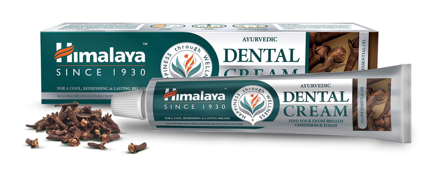 - A pasta dentífrica ayurvédica Dental Cream Clove da Himalaya Herbals tem ação antibacteriana, auxiliando na redução dos germes e as bactérias responsáveis pelas cáries dentárias, contribuindo para a manutenção desta forma dores de dentes, mau hálito e a formação da placa bacteriana.