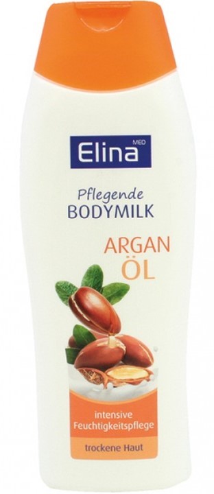 • Elina Med Argan Oil Body Milk é uma loção de Hidratação Intensiva, indicada para o cuidado da pele seca, de uso diário, leve e de absorção rápida, que hidrata e revigora intensamente a pele.