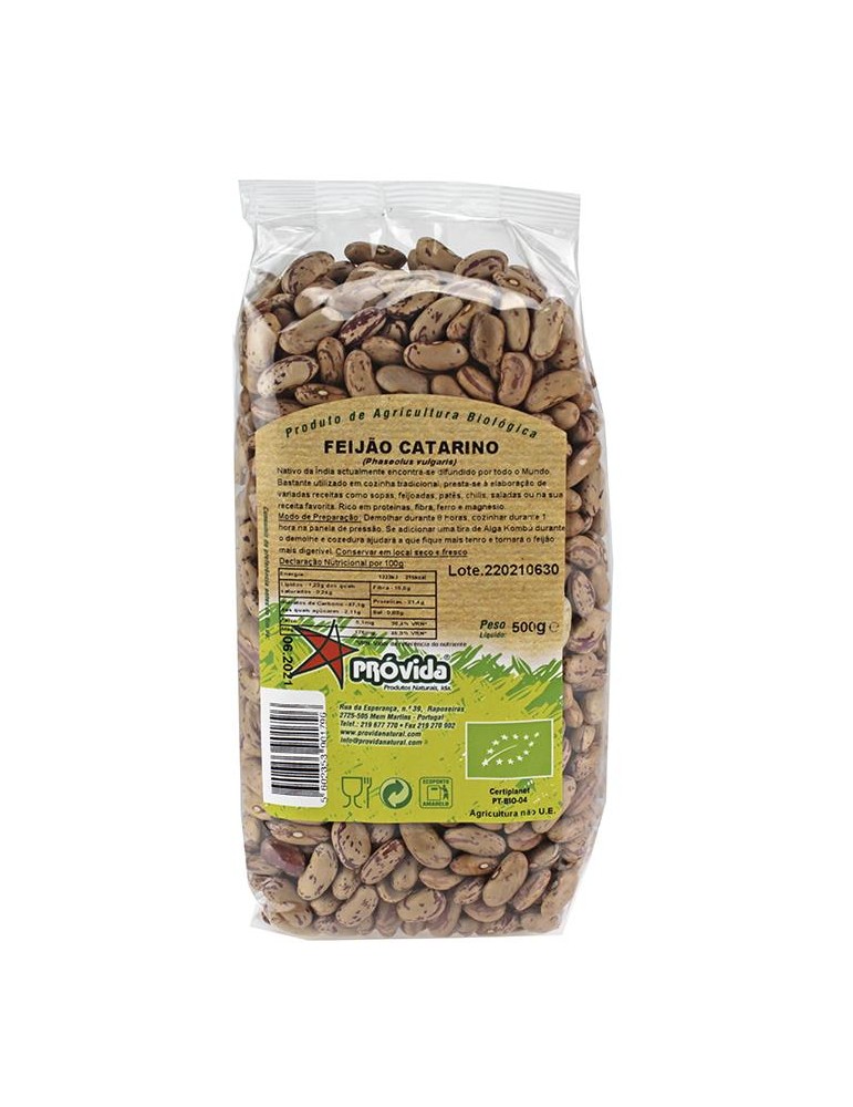Feijão Catarino de produção biológica. PT-BIO-04 Origem: não UE. Nativo da Índia, actualmente encontra-se difundido por todo o mundo. É um alimento bastante utilizado na cozinha tradicional e presta-se á elaboração de variadas receitas como sopas, feijoadas, patês, chilis, saladas, etc.
