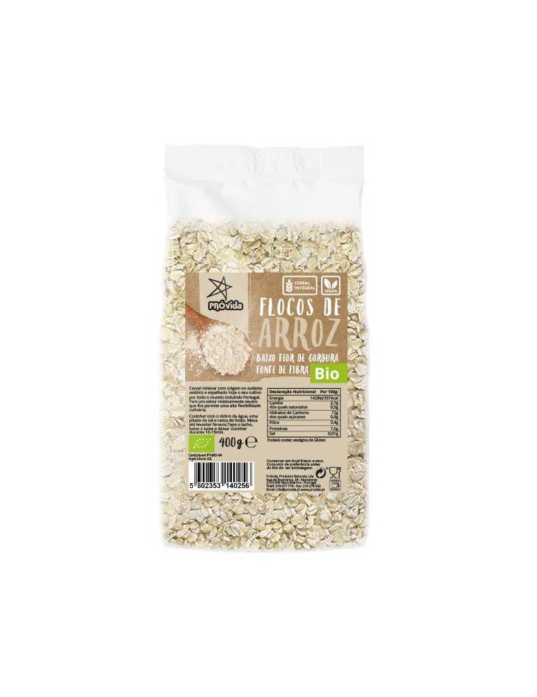Flocos de Arroz de produção biológica. Poderá conter vestígios de glúten. PT-BIO-04 Orugem: UE.