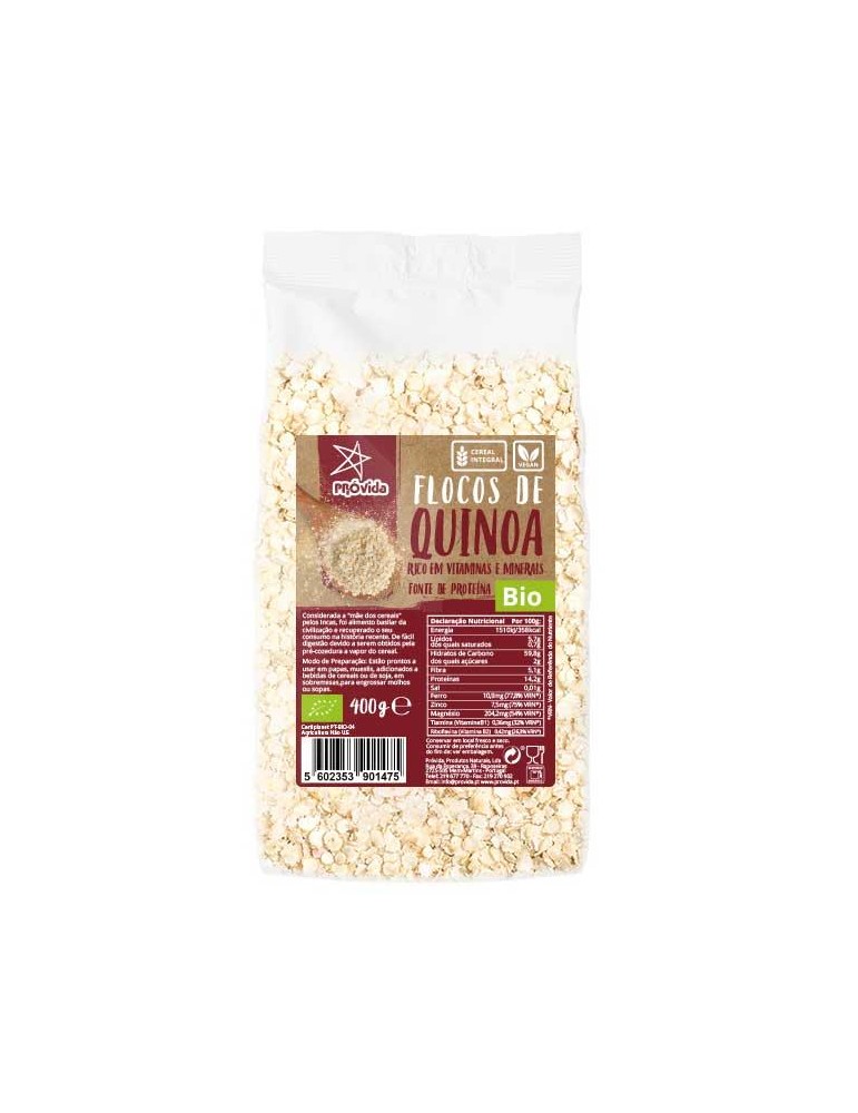 Quinoa de produção biológica. PT-BIO-04 Origem: não UE. A Quinoa constituía a base da alimentação dos incas sendo também conhecida como a "mãe dos cereais". O seu uso foi recuperado pelo movimento de alimentação natural. Os flocos de Quinoa tornam-se leves e fáceis de digerir uma vez que no seu processo de fabrico são pré-cozinhados em vapor.