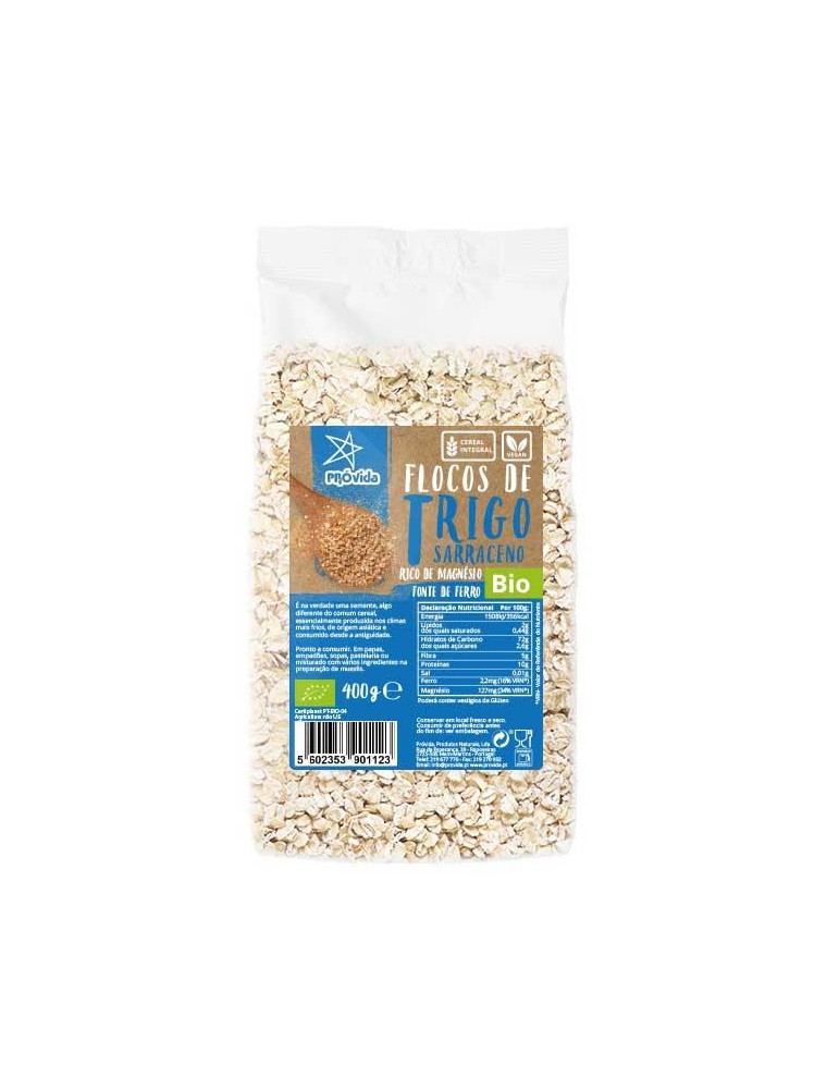 Trigo Sarraceno de produção biológica. Poderá conter vestígios de glúten. PT-BIO-04 Origem: não UE. Elaborados a partir de Trigo Sarraceno de produção biológica conservando assim propriedades nutricionais do grão. É um cereal especialmente utilizado nos climas frios. Fonte de fibra, ferro e magnésio.