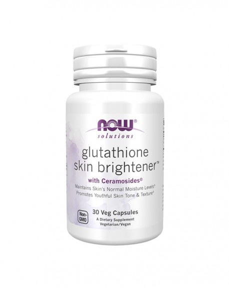 NOW® Glutathione Skin Brightener™ é um suplemento que trabalha o aspeto da pele não de uma forma tópica mas sim através do equilíbrio interno necessário para a uniformização da sua aparência. - A Glutationa é um agente antioxidante que parece influenciar a produção de melanina e assim clarear a pele, tornando-a mais luminosa.