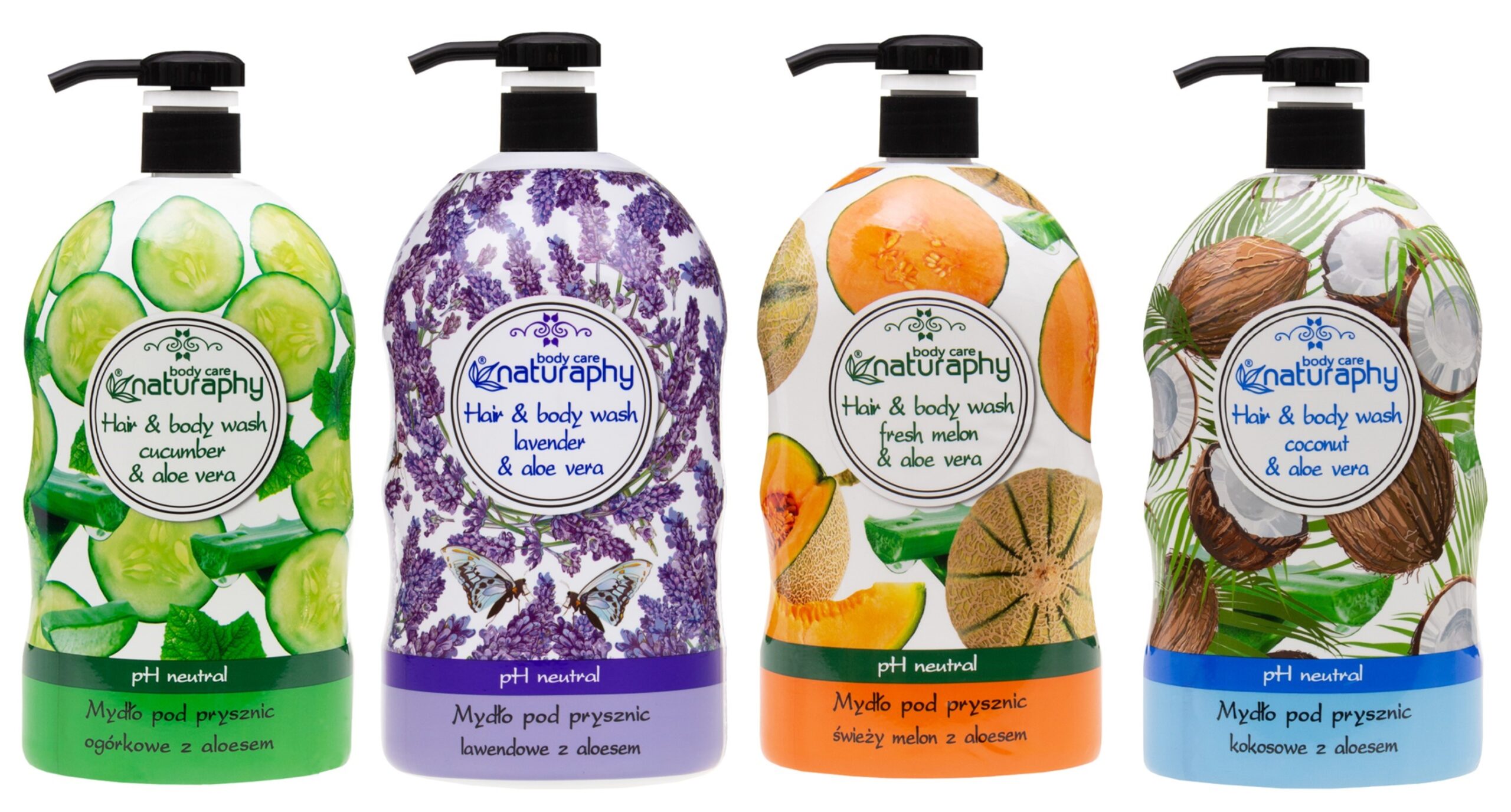 - Os Hair & Body Washes da Naturaphy® são uma linha de produtos de higiene, com delicados agentes de limpeza, e pH neutro para a pele, que lavam gentilmente a pele e o cabelo, mantendo o seu equilíbrio natural.