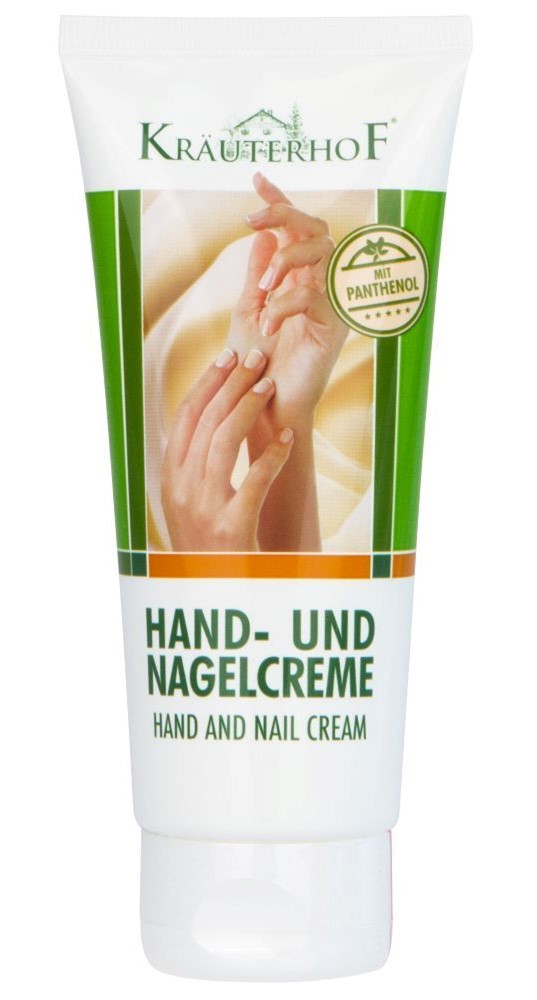 - Hand and Nail Creme da Kräuterhof® apresenta uma fórmula especial com pantenol ( pró-vitamina B5), que oferece um cuidado suave e amaciador para mãos e unhas, protegendo a pele e ajudando-a a manter-se suave e flexível.