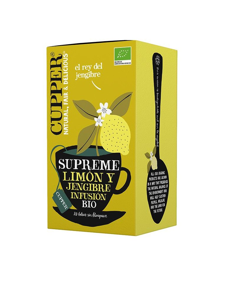 Infusão Limão & Gengibre BIO CUPPER 20saq*50g. Infusão de Erva Cidreira com Gengibre e Limão BIO Supreme – Cupper 20 saquetas x 50g.