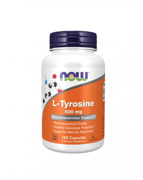 NOW® L-Tyrosine 500 mg é um suplemento de L-Tirosina, um aminoácido essencial, resultante da ação enzimática sobre a fenilalanina. - Funciona como precursor de neurotransmissores tais como a Epinefrina, Norepinefrina e Dopamina.