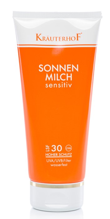 • O Leite protetor solar para rosto e corpo da Kräuterhof é especialmente adequado para o cuidado do rosto e da pele sensível.
