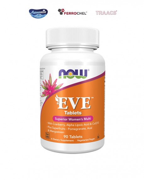 Vitamina C (de Ascorbato de Cálcio e Ascorbil Palmitato) (300 mg) (375% VRN*); Cálcio (Carbonato de Cálcio [Macroalga Aquamin®] e Ascorbato de Cálcio) (250 mg) (31% VRN*); Vitamina E (Succinato de D-alfa Tocoferilo) (200 U.I.) (172,7 mg) (1435% VRN*); Arando Vermelho ( Vaccinium macrocarpon ) (Fruta) (100 mg); Magnésio (de Citrato de Magnésio e Macroalga Aquamin®) (100 mg) (27% VRN*); Extrato de Romã (Fruta) (50 mg); Açaí orgânico ( Euterpe oleracea ) (Polpa e Pele da Fruta) (50 mg); Extrato de Outros ingredientes: antioxidantes e protetores, este suplemento, oferece os nutrientes de maior qualidade, disponibilidade e tolerância, sendo isto garantido pela utilização de patentes como: Aquamin ® – fonte mineral derivada de algas, rica em Cálcio, Magnésio e 74 outros minerais, incluindo Zinco, Ferro e Selénio. Produzido a partir de algas vermelhas, as espécies Lithothamnion, que se encontram em apenas três locais do mundo, incluindo a costa sudoeste da Irlanda e da Islândia. Durante a sua fase de crescimento, estas algas absorvem minerais essenciais do mar – o que dá a Aquamin® o seu conteúdo multimineral único. Estas algas quebram naturalmente sobre o leito do mar. Os restos de esqueletos calcificados são colhidos, lavados, secos e moídos em quatro formas para diferentes aplicações – alimentos e bebidas. Nada mais é adicionado. Ferrochel® – preparado de Ferro cuja molécula é mais pequena, estável e não reativa, e por isso mais bem absorvida. Os péptidos pequenos de proteínas são mais fáceis de absorver pelo organismo, pelo que a sua utilização como transportadores dos minerais é vantajosa em termos de absorção intestinal. Este processo de ligação é chamado quelação (key-lay-shun). Ferrochel® é um quelato de ferro com glicina e não causa obstipação (prisão de ventre). TRAACS® – marca registada dos laboratórios Albion que garante que os minerais presentes na formulação são minerais aminoácidos quelatos. Apresentação: Embalagem de 90 comprimidos. Modo de tomar: Tomar 3 comprimido por dia com alimentos. Ingredientes (por 3 comprimidos): Vitamina C (de Ascorbato de Cálcio e Ascorbil Palmitato) (300 mg) (375% VRN*); Cálcio (Carbonato de Cálcio [Macroalga Aquamin®] e Ascorbato de Cálcio) (250 mg) (31% VRN*); Vitamina E (Succinato de D-alfa Tocoferilo) (200 U.I.) (172,7 mg) (1435% VRN*); Arando Vermelho ( Vaccinium macrocarpon ) (Fruta) (100 mg); Magnésio (de Citrato de Magnésio e Macroalga Aquamin®) (100 mg) (27% VRN*); Extrato de Romã (Fruta) (50 mg); Açaí orgânico ( Euterpe oleracea ) (Polpa e Pele da Fruta) (50 mg); Extrato de Mangostão (Fruta descascada) ( Garcinia mangostana ) (50 mg); Ácido Pantoténico (Vitamina B-5) (de D-pantotenato de Cálcio) (50 mg) (833% VRN*); Niacina (vitamina B-3) (como Niacinamida e de Inositol Hexanicotinato) (30 mg) (188% VRN*); Coenzima Q10 (CoQ10) (30 mg); Ácido Alfa Lipóico (30 mg); Potássio (de Cloreto de Potássio) (25 mg) (1% VRN*); Tiamina (Vitamina B-1) (de Cloridrato de Tiamina) (25 mg) (2273% VRN*); Riboflavina (Vitamina B-2) (25 mg); Vitamina B-6 (Cloridrato de Piridoxina e Piridoxal-5-fosfato (P-5-P)) (25 mg) (1857% VRN*); Colina (de Bitartarato de Colina) (25 mg); Inositol (25 mg); Aloé Vera Orgânica (folha) (concentrado) (25 mg); Ferro (Bisglicinato de Ferro) (Ferrochel®) (18 mg) (129% VRN*); Zinco (Bisglicinato de Zinco) (TRAACS®) (15 mg) (150% VRN*); Manganês (Bisglicinato Manganês) (TRAACS®) (2 mg) (100% VRN*); Cobre (Bisglicinato de Cobre) (TRAACS®) (1 mg) (100% VRN*); Vitamina A (100% como Beta-Caroteno) (3000) mcg (10.000 U.I); Folato (Ácido Fólico) (800 mcg) (400% VRN*); Licopeno (de extrato de Tomate natural) (500 mcg); Luteína (de flores de Calêndula) ( Tagetes erecta ) (FloraGLO®) (500 mcg); Biotina (300 mcg) (600%. VRN*); Selénio (L-selenometionina) (200 mcg) (364% VRN*); Vitamina B-12 (Metilcobalamina) (200 mcg); Iodo (Iodeto de Potássio) (150 mcg) (100% VRN*); Crómio (de Picolinato de Crómio) (120 mcg) (300% VRN*); Vitamina K (Menaquinona K-2 e Fitonadiona K-1) (80 mcg) (107% VRN*); Molibdénio (Molibdato de Sódio) (75 mcg) (150% VRN*); Vitamina D (Ergocalciferol) (1000 U.I.) (25 mcg) (500% VRN*). *Valor de Referência do Nutriente. Outros ingredientes: Celulose microcristalina, Hidroxilpropilcelulose, Revestimento vegetal [Hipromelose (celulose), carbonato de cálcio, xilitol, óleo MCT, extrato de espirulina, riboflavina), Dióxido de Sílica, Ácido Esteárico (origem vegetal) e Croscarmelose de Sódio. Produzido sem: Trigo, glúten, peixe e marisco. Isento de: Leite e derivados e ovo. Advertências: Manter fora do alcance das crianças. Não deve ser utilizado como substituto de um regime alimentar variado e equilibrado. Não exceder as dosagens recomendadas. Consulte um médico se estiver grávida ou a amamentar, a tomar alguma medicação ou se tiver algum problema de saúde. EVE EVE 30