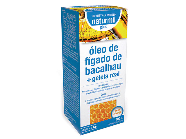 Óleo Fígado Bacalhau 500ml Plus (+Geleia Real) Solução Oral é um suplemento alimentar da marca Naturmil.