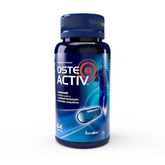 Osteo Activ 64 cápsulas é um suplemento alimentar formulado para proporcionar ação anti-inflamatória natural. Este suplemento combina Sulfato de Glucosamina, Vitamina C, Sulfato de Condroitina Bovina e Gluconato de Manganês, numa fórmula prática para uso diário.
