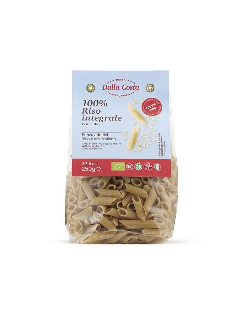 Penne de Arroz Integral S/Glúten BIO 250g. Massa Penne de arroz integral – especialidade alimentar biológica isento de glúten Dalla Costa 250g.