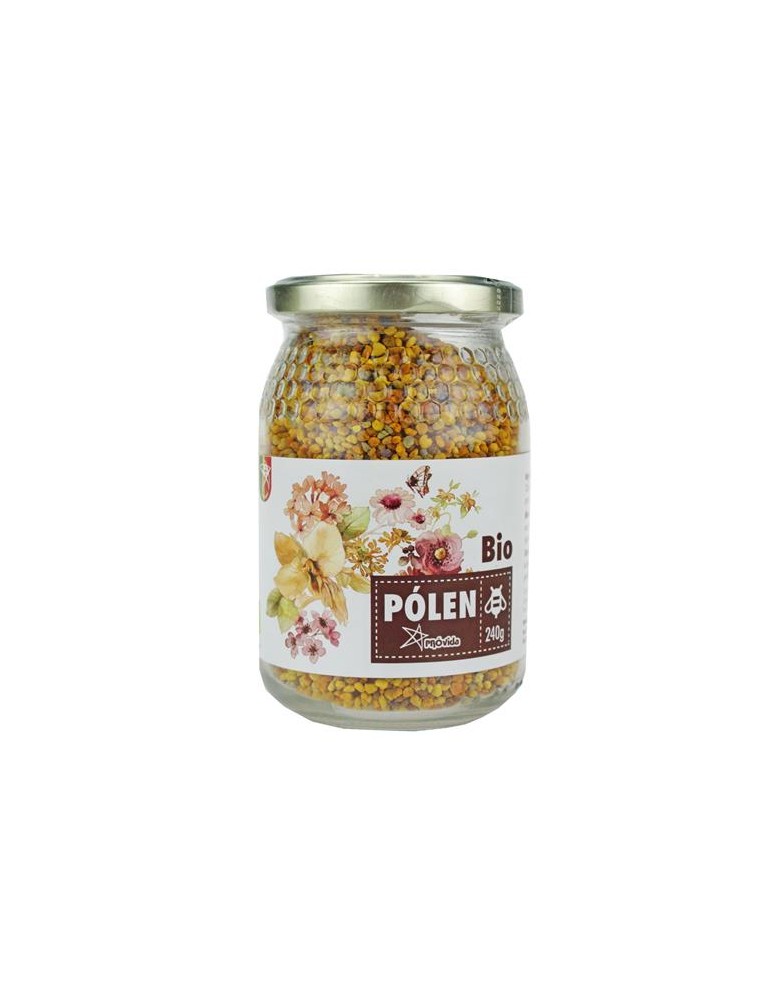 Pólen BIO 240g. Pólen de flores, 100% natural de produção biológica. PT-BIO-O4. Agricultura Portugal.Declaração nutricional por 100g: Energia – 1584kJ/374kcal; Lípidos- 3,2g, dos quais saturados- <3,2g; Hidratos de carbono- 65,8g, dos quais açúcares- 41,1g; Fibra- 5,1g; Proteínas- 18g;Sal- 0,1gPara um melhor aproveitamento e efeito imediato, o pólen deve ser consumido em jejum e mastigado; desta forma, devido à salivação e trituração haverá uma maior assimilação pelo organismo humano. Também pode ser consum