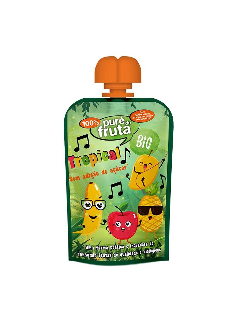 Maçã* (60%), manga* (20%), ananás* (10%), banana* (10%). *de produção biológica. IT-BIO-007, Origem: UE/não UE. Sem conservantes, aromas ou açúcares adicionados. Contém açúcares naturalmente presentes.Oferece uma forma prática e inovadora de consumir futas de qualidade. Vegan.