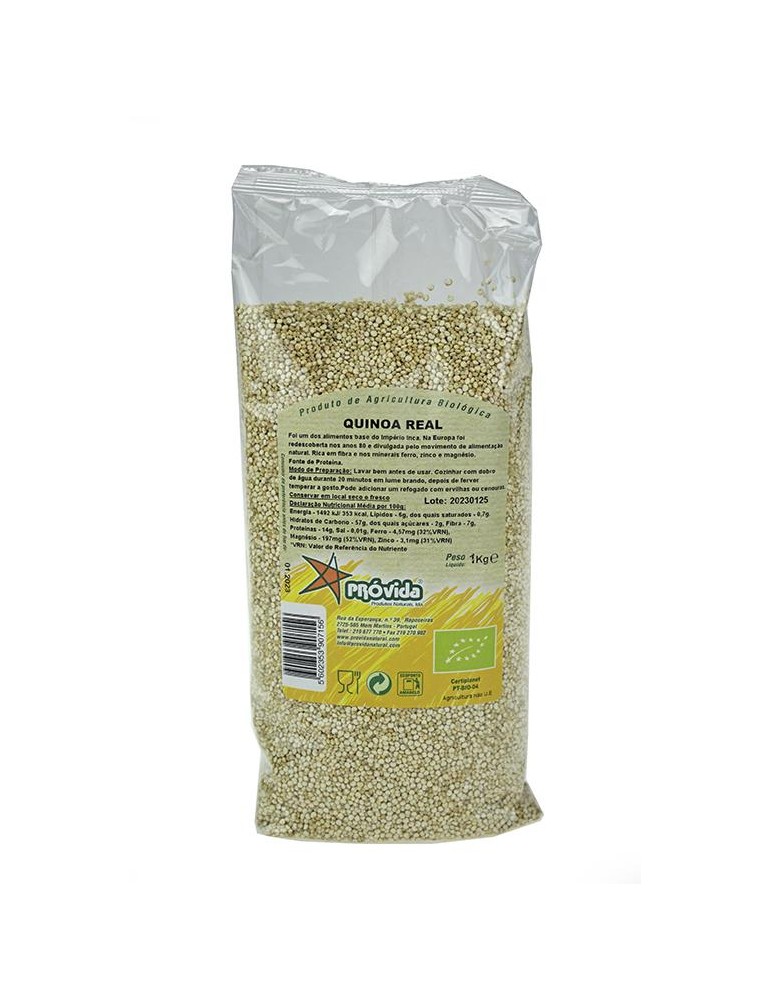 Quinoa de produção biológica. PT-BIO-04 Origem: não UE. A sua cultura foi iniciada há mais de 2000 anos, sendo um dos alimentos básicos do império Inca. Foi redescoberta nos anos 80 e divulgada pelo movimento de alimentação natural.