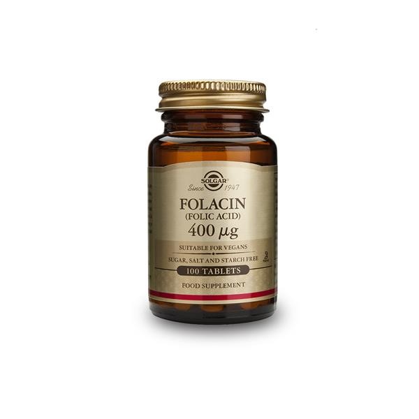 Fornece 400 µg de ácido fólico por comprimido. Solgar Folacin fornece 400 µg de ácido fólico por comprimido. Isento de: açúcar, sal, amido, glúten, trigo, produtos lácteos, soja, levedura, conservantes, edulcorantes, aromas artificiais ou corantes. Adequado para vegans.
