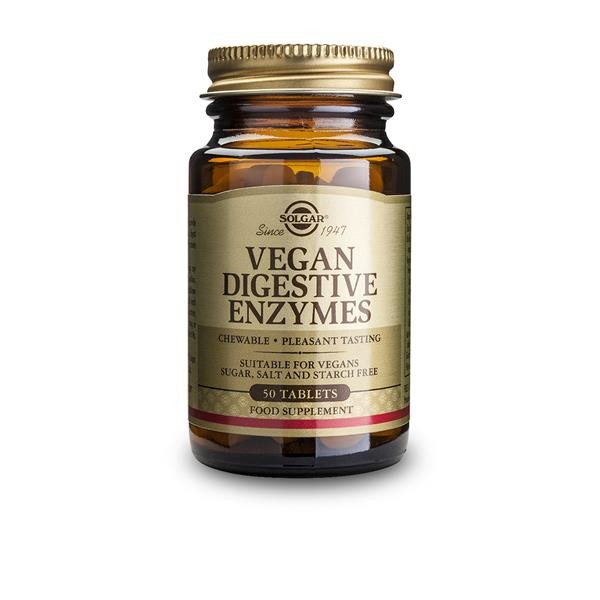 Os comprimidos Enzimas Digestivas Vegan Solgar fornecem uma combinação de enzimas que digerem hidratos de carbono, lípidos, proteínas e fibras de celulose de plantas. Aroma natural de hortelã-pimenta. DU: Unidade Dextrinizante HUT: Unidade de Hemoglobina numa base de tirosina FIP: Lipase Fúngica – Padrão FIP Internacional AG: Unidade de Atividade da Glucoamilase CU: Unidade de Celulase. Isento de: açúcar, sal, glúten, trigo, produtos lácteos, soja, levedura, conservantes, aromas artificiais o…