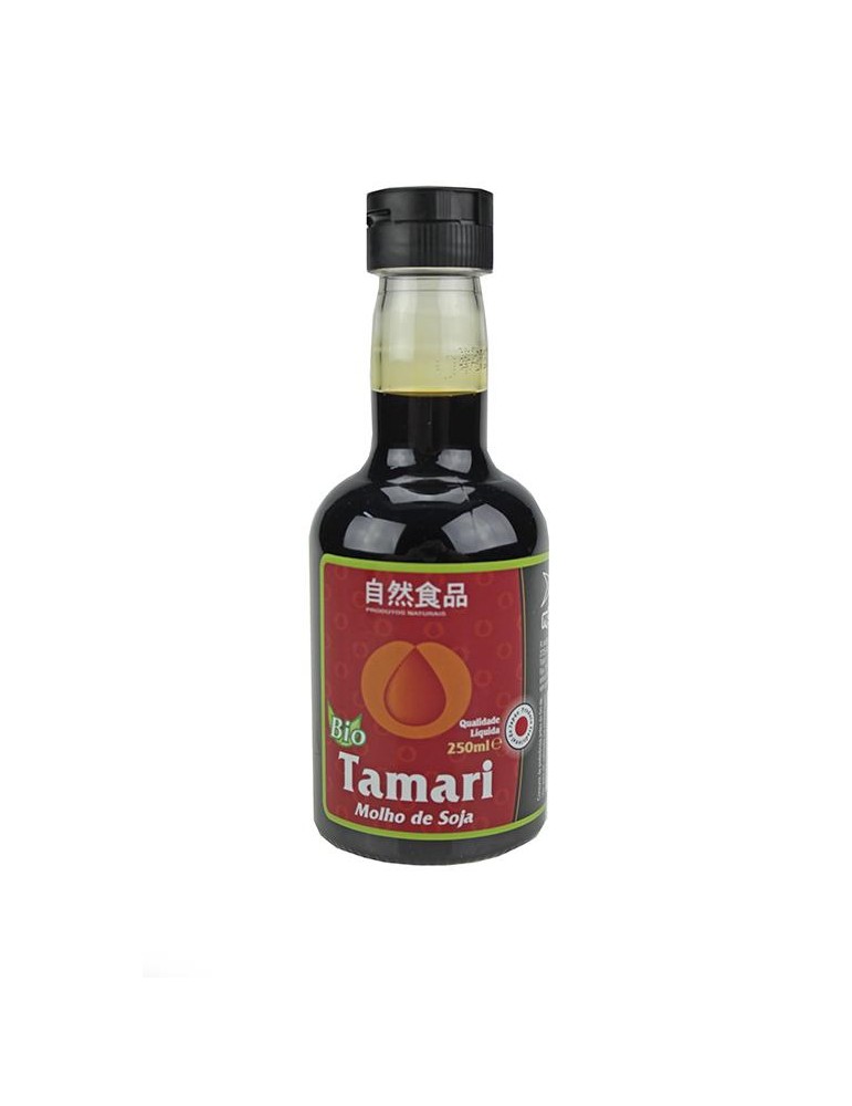 Tamari – Molho de Soja BIO 250ml Próvida. Ingredientes: Feijão de SOJA* (42%), água, sal marinho, mirin* (arroz*, arroz glutinoso*, água), farinha de CEVADA* e koji – Aspergillus oryzae. *de produção biológica. PT-BIO-04 Origem: não UE. Este condimento teve origem na China há cercade 2500 anos, tendo sido levado posteriormente para o Japão (séc. VII) por monges Budistas.O seu sabor é mais concentrado que o Shoyu, é obtido de forma tradicional através de um processo de fermentação dos feijões de soja. Este p