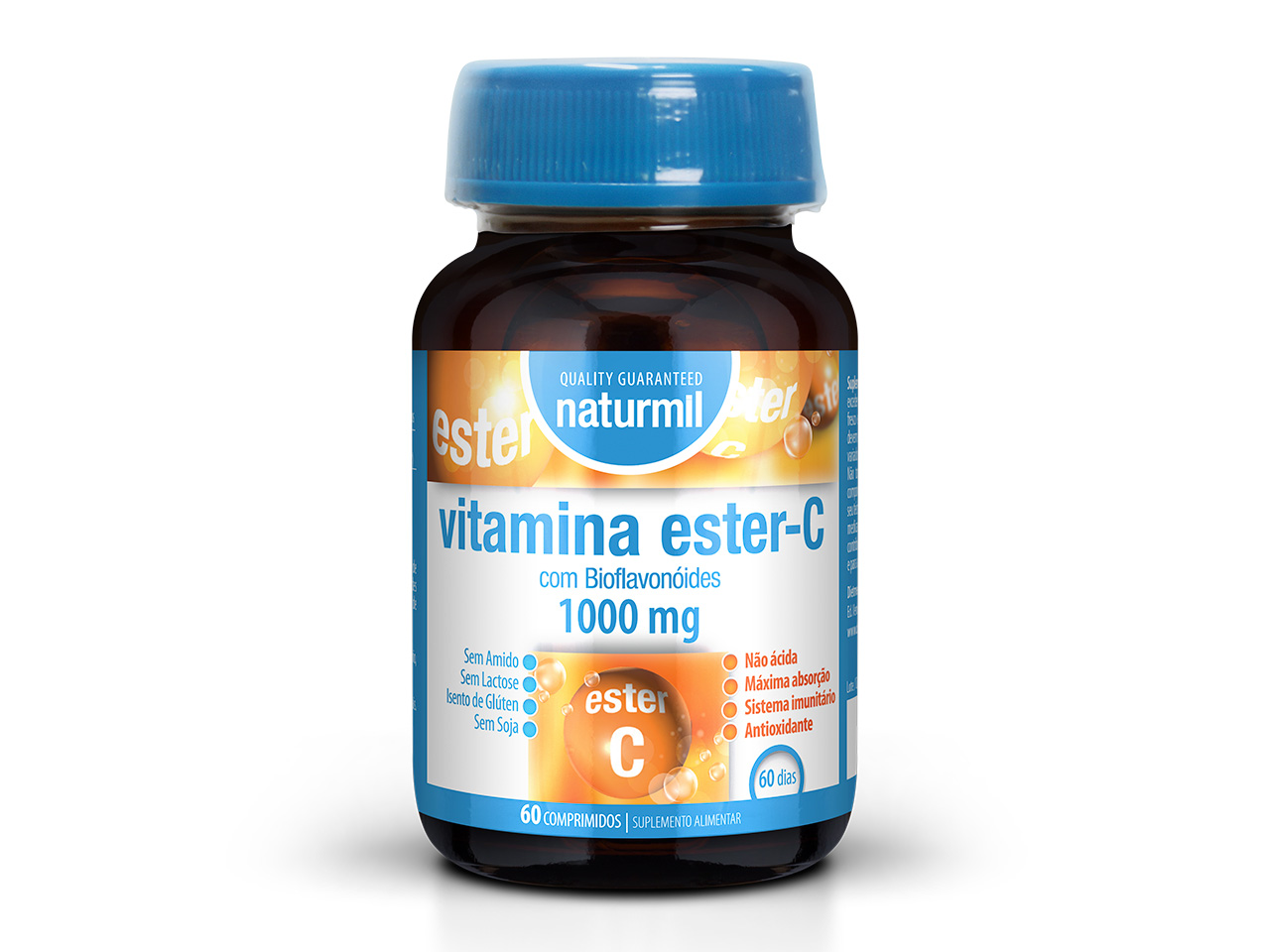 Vitamina Ester-C 1000mg 60cmp é um suplemento alimentar da marca Naturmil.