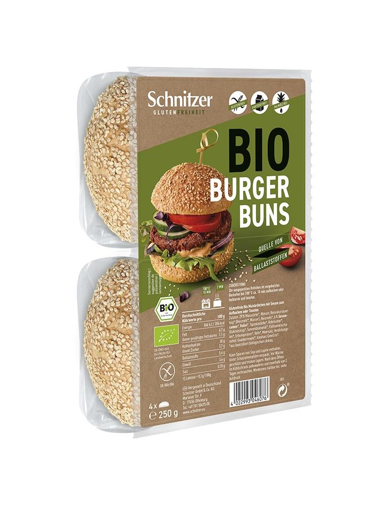 Pães de Milho Biológicos para Hambúrguer – Hamburguer Buns Sem Glúten 250g – Schnitzer