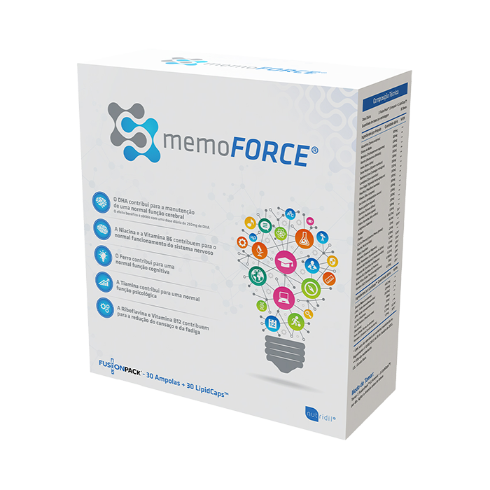 MemoForce é um suplemento alimentar em formato FusionPack (30 ampolas + 30 cápsulas), ideal para quem procura melhorar a função cerebral, a memória e a concentração. A sua fórmula equilibrada combina nutrientes essenciais, adaptogénios e antioxidantes, contribuindo para: